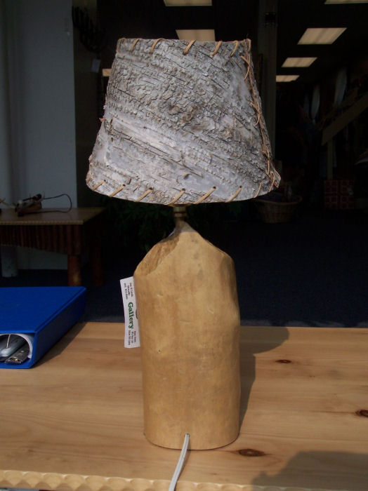 This beaver chew lamp base comes without a shade. Beaver chew found in nature and wired by Joe Monasky.