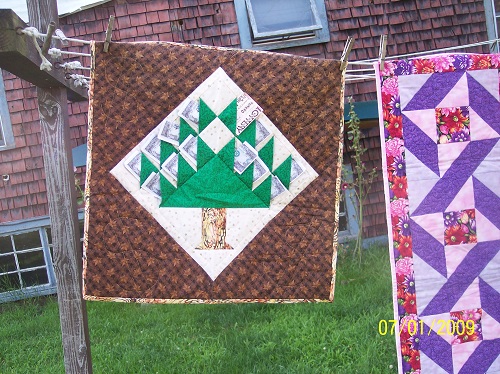 This wall hanging was made for a quilt guild challenge. Tree is covered with "$1,000,000,000" bills.Pieced & quilted by Linda Monasky Latitude / Longitude:24" square Placename:$18.00 Date added: 28th December 2011 If you are interested in purchasing any of these items, call us at 603 875-2781
